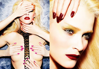 Mario Testino and Carmen Kass seem to have a soft spot for bold colors, either in the over the top styling (like this editorial) or the beauty treatment, like this one from the September 2009 issue of Allure magazine.